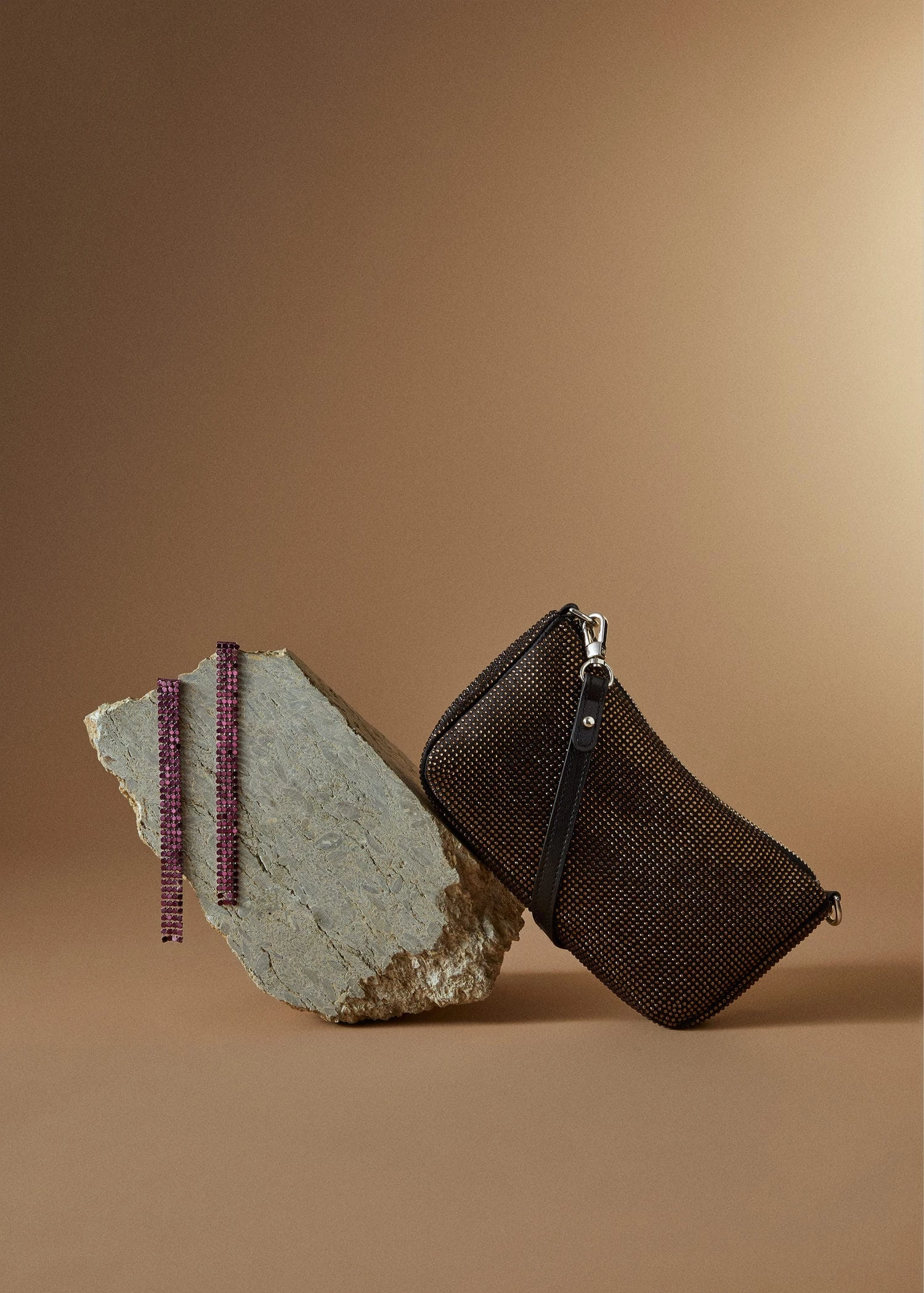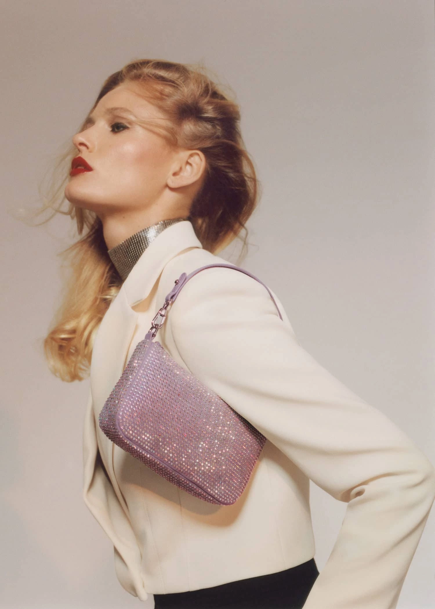 Composition: 100% polyester. Lining: 100% polyester. Details: 100% glass. Handle: 100% polyurethane